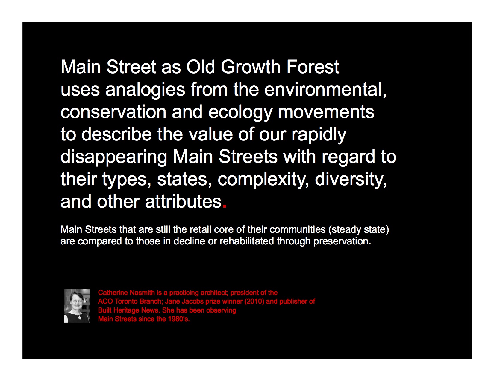 Come hear our speaker’s presentation on, “Main Street as Old Growth Forest”