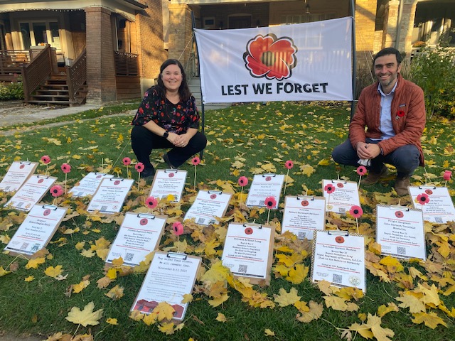 Please join Bloor West Village residents and high school teachers, Katy Whitfield and Ian DaSilva, creators of “They Walked These Streets, We Will Remember Them” as they present their wonderful initiative at our Thursday, November 3rd, 2022 meeting – on Zoom at 7pm. Katy and Ian honour over sixty Bloor West Village residents who served in the First and Second World Wars and who never returned home.