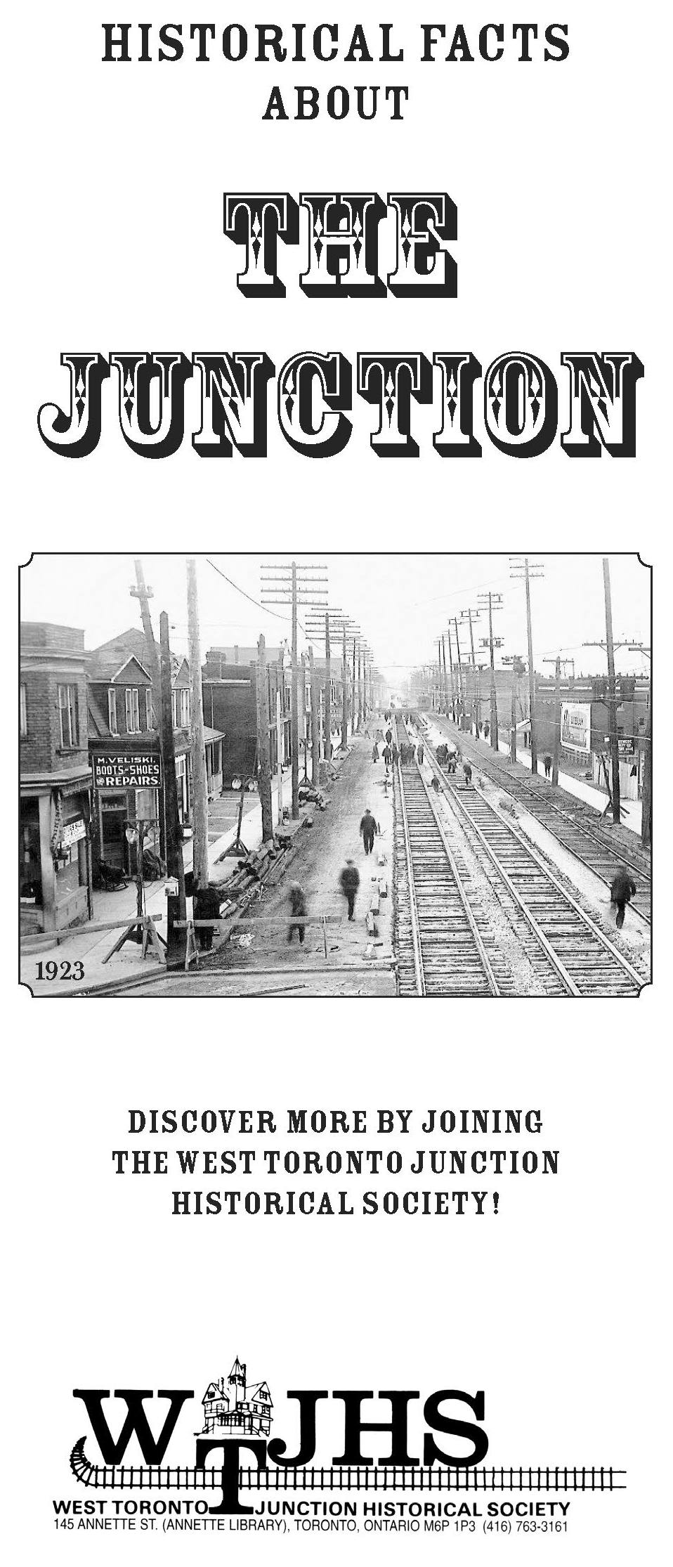 The Junction is celebrating the Centennial of its incorporation as an independent city in 1908, which it remained for one year and nineteen days. Then it joined Toronto as an equal: