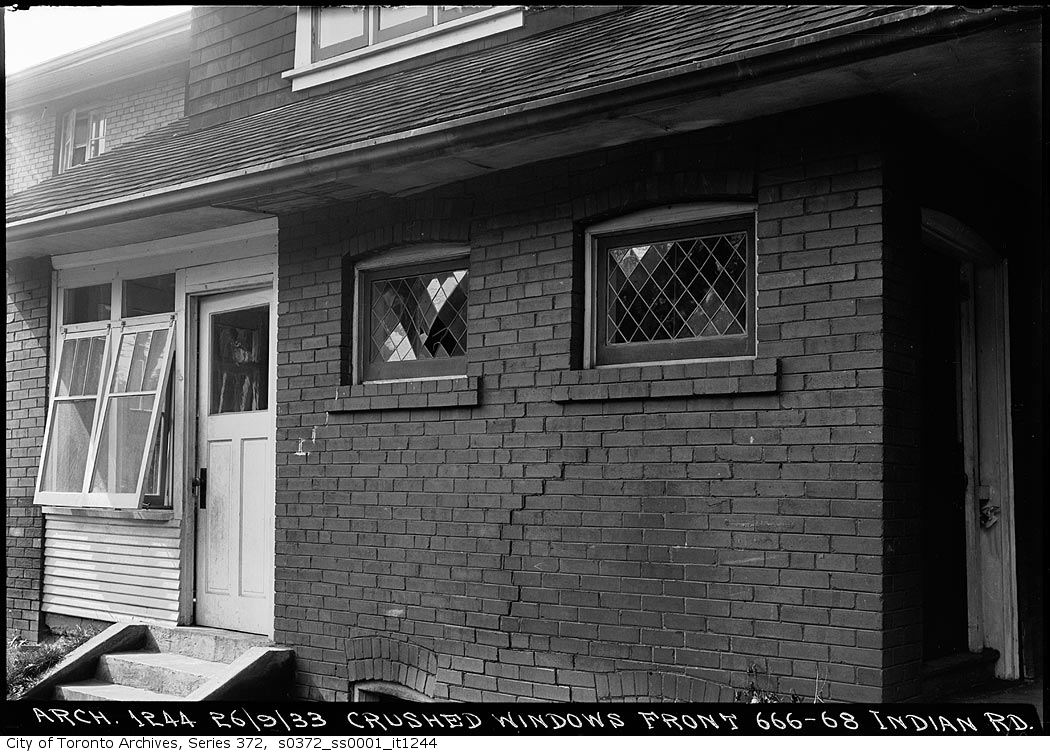 Front of 666-668 Indian Road — crushed windows. September 26, 1933