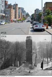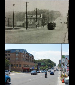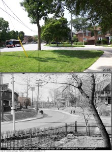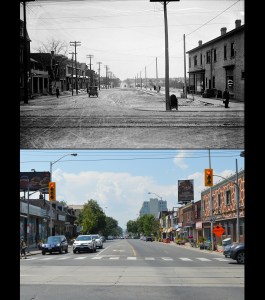 Bloor Street West and High Park, facing west to Clendenan Ave. 1914 & 2015.