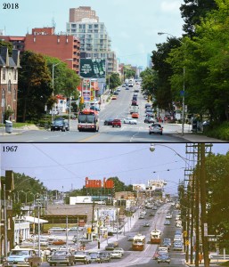 Bloor Street West and Keele Street facing east, 1967 and 2018.