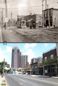 Bloor Street West facing east to Clendenan Ave., 1914 and 2018.