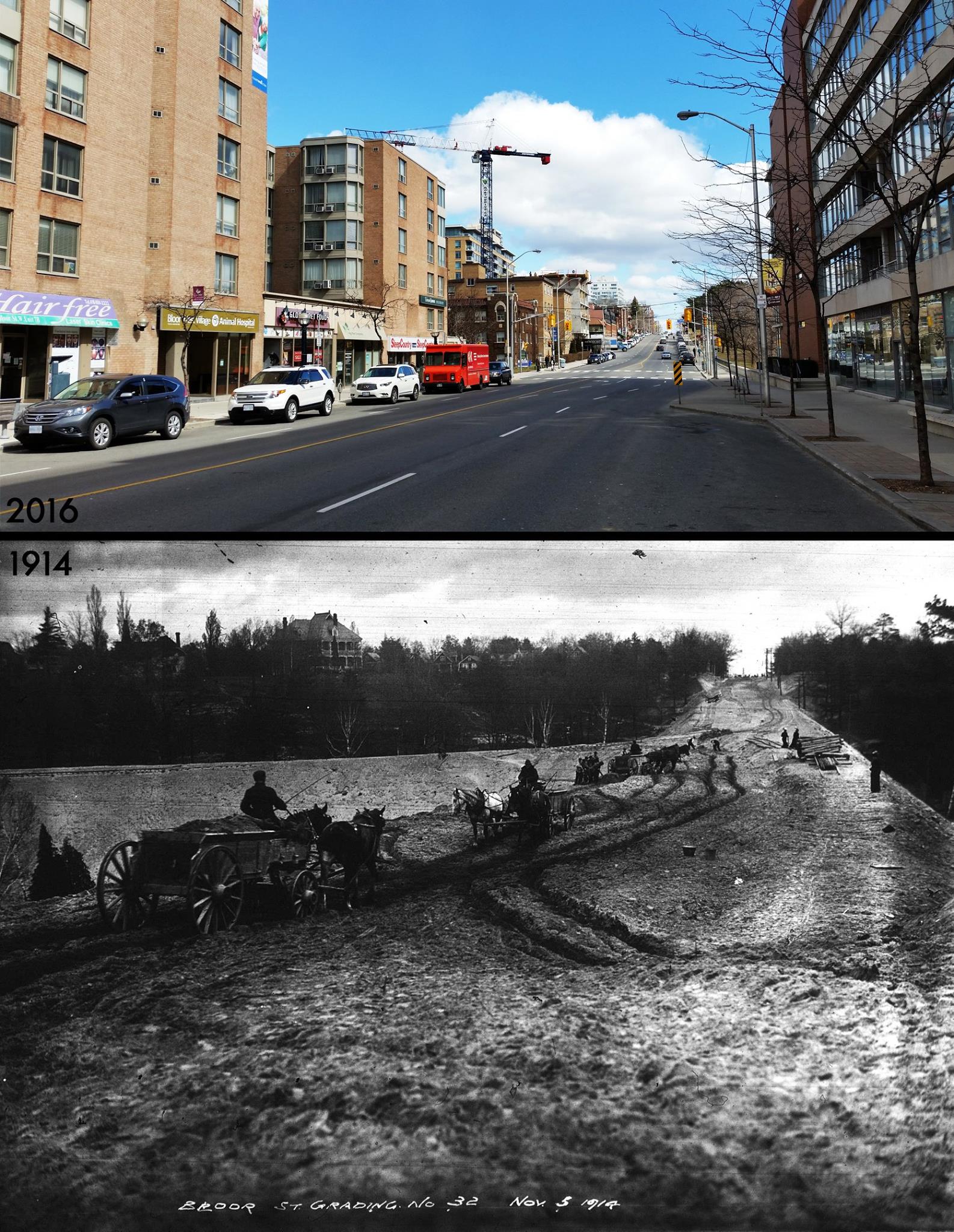 Bloor Street West facing east to Clendenan Ave., 1914 and 2018.